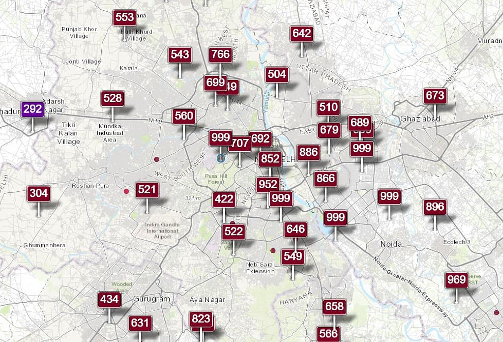 It has to be noted that the Air Quality Index data provided by the Delhi Pollution Control Committee is reflecting higher values than the data provided by the Central government. Most of the Monitoring stations in central Delhi according to the former, reflect the city touching the upper limit of AQI of Pm 2.5 pollutants at 999 at multiple monitoring stations.