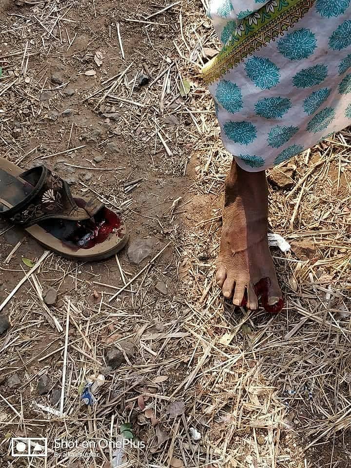 My husband is very old and my house is in the forest. We have nine people in the family and not enough to eat. There is no irrigation and we have go to labour work where I get only Rs 100 per day. We have to save that to buy seeds and insecticide. How can this go on?, Shantabai asks.