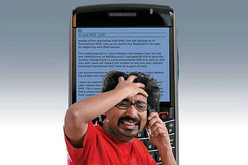 Signing up, along with some 66 million souls, at the National Do Not Call (NDNC) Registry set up in October 2007, provided no protection to Pradeep, nor did changing phone numbers. “I got a new number from Vodafone recently, and would you believe it, the very next day I was bombarded with promotional messages. They had clearly passed on my number,” he says. The NDNC of the Telecom Regulatory Authority of India (TRAI) is now widely acknowledged as a failure. There was a brief dip in calls, but they resumed with renewed gusto. You could get lost in the maze of explanations for why NDNC doesn’t work; what’s clear, though, is that it has no capacity to deal with telemarketers who fail to register with it—like all those unknown real estate companies who bombard you with SMSes—and little teeth to deal with those who do. Fines are laughably minuscule—ranging from Rs 500 to Rs 1,000—and the threat of disconnecting a telemarketer’s line is an empty one when it can quickly sign up and assault consumers from another connection. In view of its failure, a Do Call registry has been mooted, on the more consumer-friendly principle that those who want to be called should opt in rather than opt out. Consultations are on but its future shape is still unclear, with telecom companies (no surprise there) opposed to it. “We have gone far with dnc. To now backtrack and try something new doesn’t seem feasible,” says Mukarji.