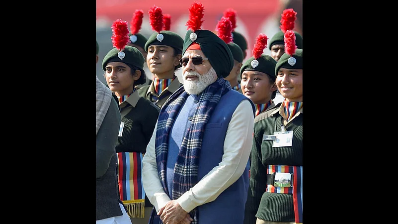 Two days after donning the traditional cap of Uttarakhand and a stole from Manipur during the Republic Day parade, Prime Minister Narendra Modi wore a Sikh cadet turban while attending a rally of the National Cadet Corps (NCC) in Delhi on Friday.