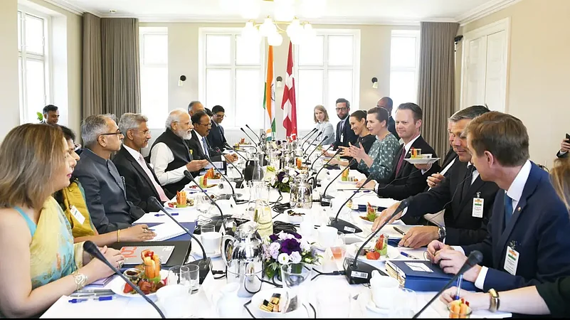 Prime Minister Narendra Modi on Tuesday met Denmark's Prime Minister Mette Frederiksen during his first visit to the country, following which Modi said the two countries don't just share the ideals of democracy, free speech, and rule of law, but also have many "complementary strenths".