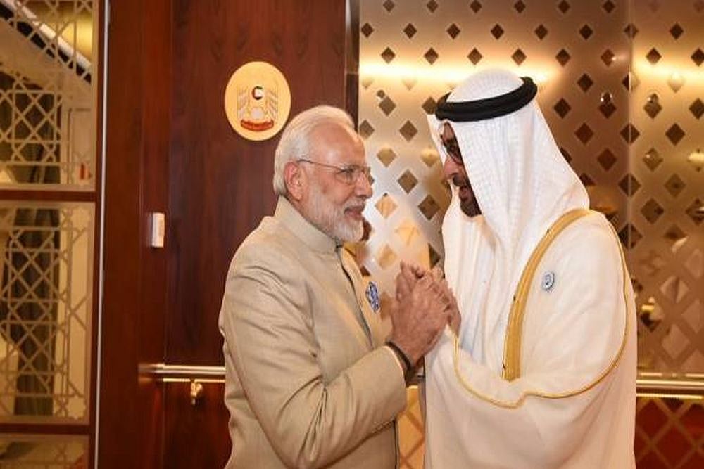 Modi, who arrived in Abu Dhabi from Jordan on the second leg of his three-nation tour, was received by Mohammed Bin Zayed and other members of the Royal family at the airport. The two leaders hugged each other and exchanged pleasantries.
