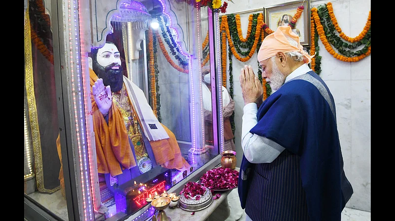 During his visit to the temple, Modi also joined devotees singing bhajans. Greeting people, the prime minister tweeted a media report about ongoing work at the expansion and beautification of the temple at the saint's birthplace in Varanasi, also his parliamentary constituency.