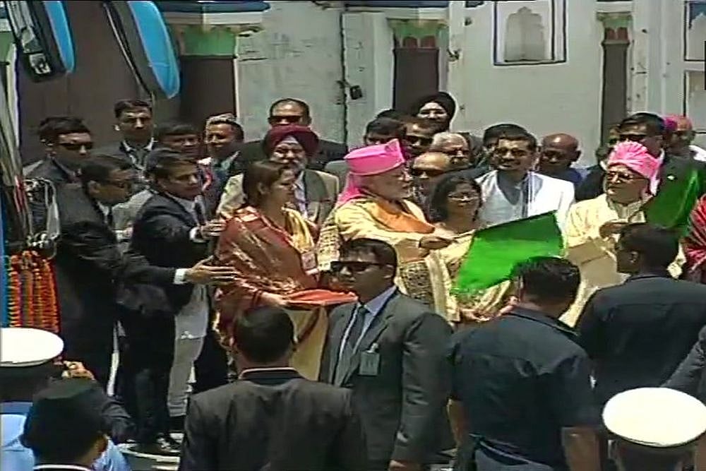 Modi flagged off the bus after visiting the famed 20th century Janaki temple, dedicated to the Hindu goddess Sita, where he offered special prayers.