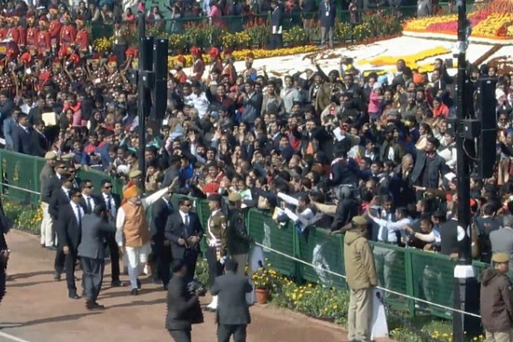 Prime Minister Narendra Modi walked down the Kartavya Path on Friday after the conclusion of the 75th Republic Day parade and waved at people seated in enclosures.