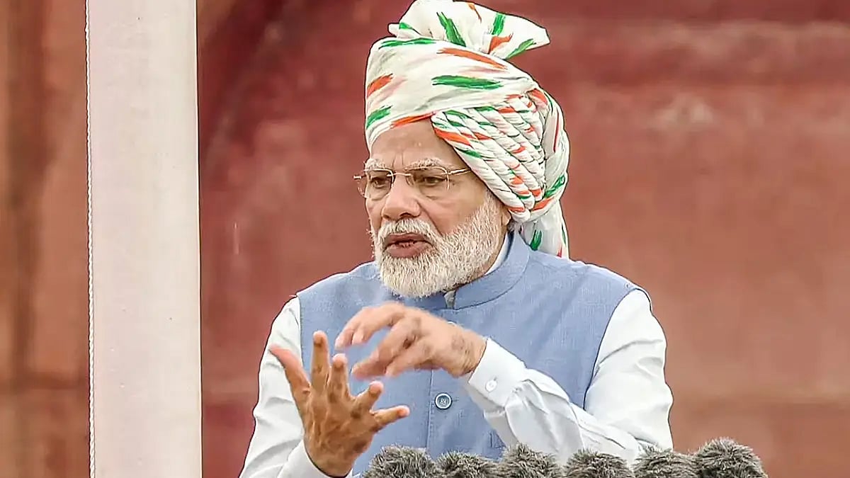 Prime Minister Narendra Modi on Monday interacted with NCC cadets dressed in traditional attire and seated in the geographical formation of the map of India in front of Red Fort's ramparts.