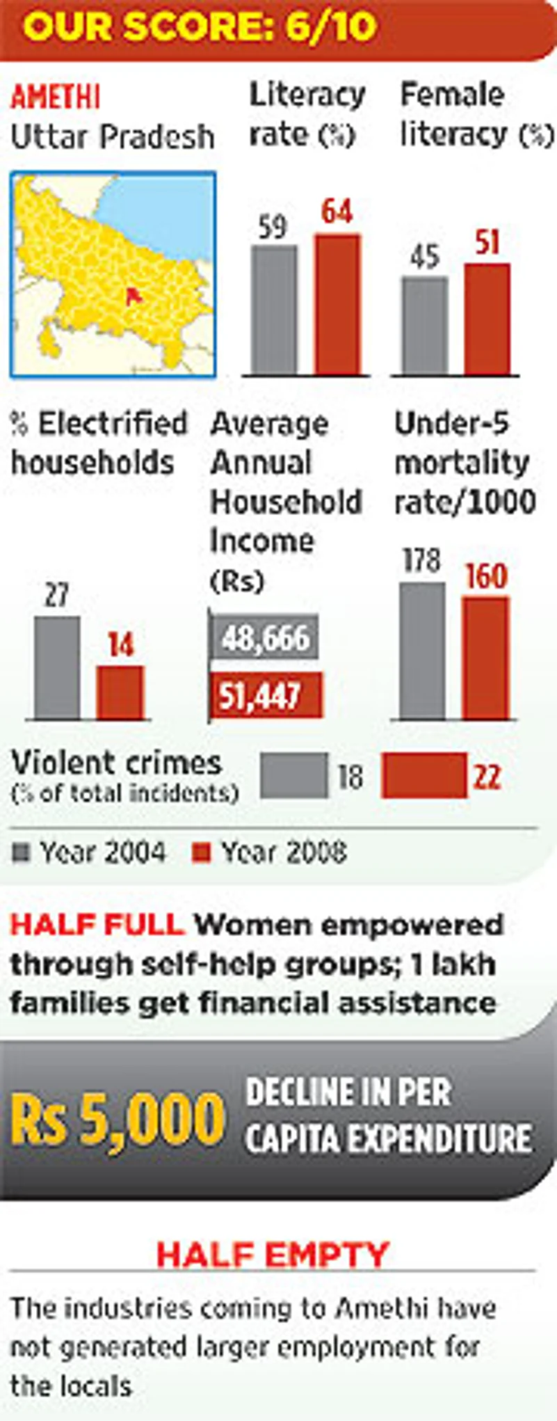 If people here do not even know the names of other candidates contesting from Amethi, one would perhaps tend to accuse Rahul of having it easy. But irrespective of its political colour, there has been actual progress in the past five years. If father Rajiv had emphasised on setting up industrial hubs in the Jagdishpur and Gauriganj assembly segments, Rahul’s focus has been either on expanding the existing plants or on revival of the sick units. Significant among these was the takeover of the "defunct" Malvika Steel by the Steel Authority of India (SAIL) through an investment of Rs 510 crore. The young MP also used his clout to ensure that the Rs 3,241-crore Hindustan Paper Mill will come up in Jagdishpur. The Rs 450-crore Rajiv Gandhi Institute of Petroleum Technology is also in the pipeline.