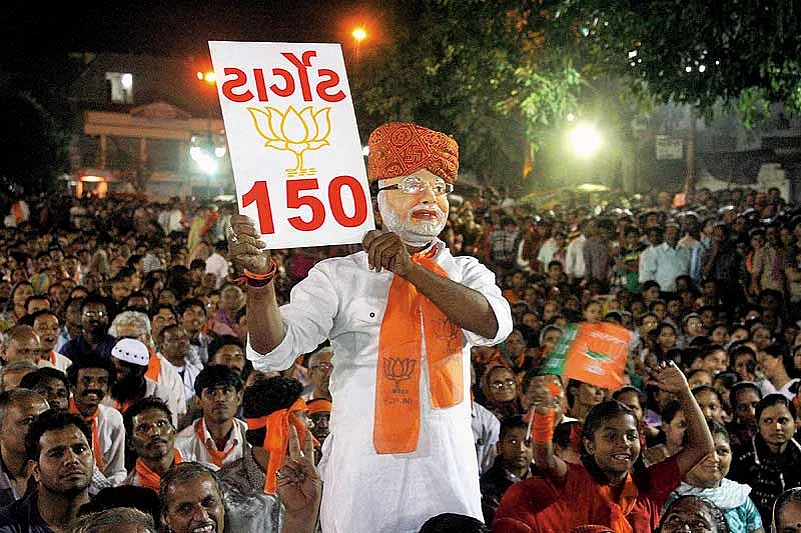 He looks a little flushed, even ruddy. Perhaps it’s a suntan lotion. Walking up the dais, the chief minister of Gujarat calmly examines the mass gathered in front of him, smiles at them, motions them to sit down, and begins slowly. “They say there is a BJP lehar in Gujarat, a wave. But,” he ups the tempo at this point, “I say there is a BJP aandhi (storm) here. And this aandhi will blow the Congress out of Gujarat from its roots for good.” He can barely finish the sentence as the crowd gets into a frenzy. “Soniaben came here and asked for your votes saying her sasu (mother-in-law) has come here. Her sasu has come here! So?” The crowd reaches a state of delirium. “Rahul Baba came here and said he will fulfil Mahatma Gandhi’s promise. Yes, he will certainly fulfil one of Gandhiji’s promises. After Independence, Gandhiji called all the Congress leaders and told them that now that their job was done, it was time to dismantle the party. Shriman Rahul will fulfil that promise of Gandhiji. He will make sure the Congress party is decimated.”