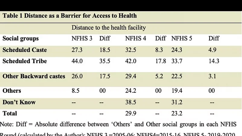 They are comparatively more disadvantaged in terms of health indicators. Access to health facilities is once such indicator. Distance as a barrier to accessing health care has reduced over the period of time, but the difference between the marginalised and the privileged groups has remained persistent (Table 1). Inequality has significant impact on health outcomes.