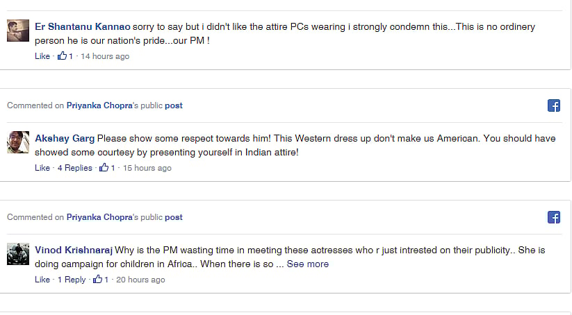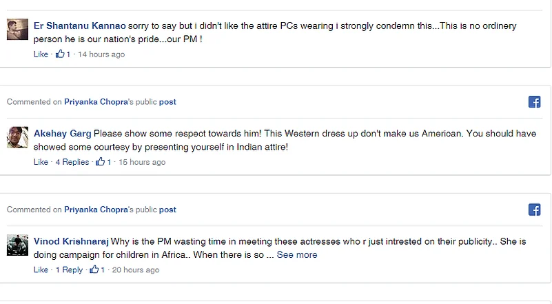 After receiving hundreds of hate comments for "showing legs", forgetting "Indian culture", and even sitting cross-leggedbefore the Prime Minister Narendra Modi, Chopra responded to the trolls by posting this photograph with her mother Madhu Chopra on Instagram.