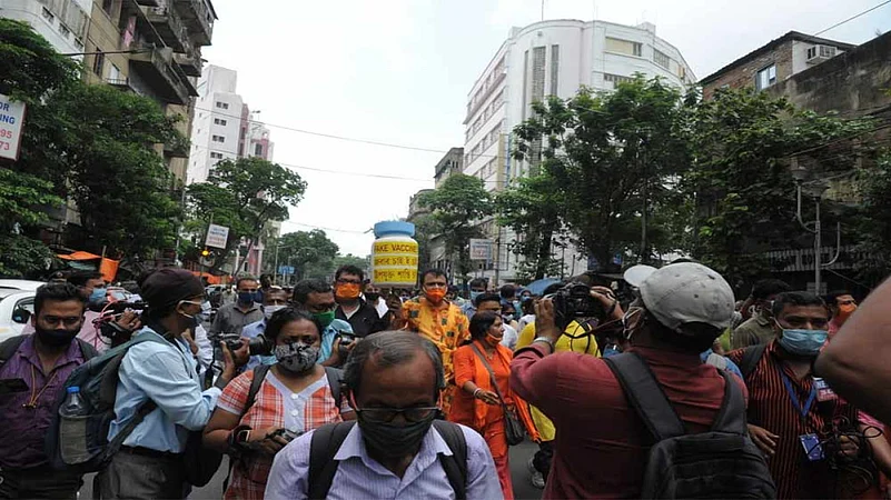 BJP MLA leads demonstrators protesting against the fake vaccination camp controversy in Kolkata