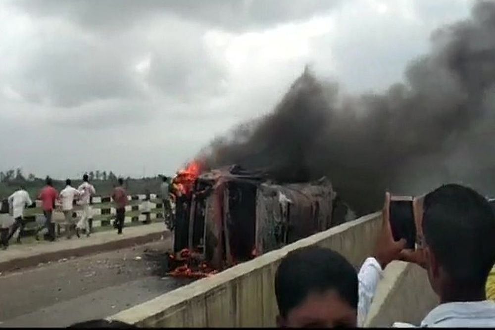 A fire brigade van was also set afire at Kaygaon by the protesters, police said.