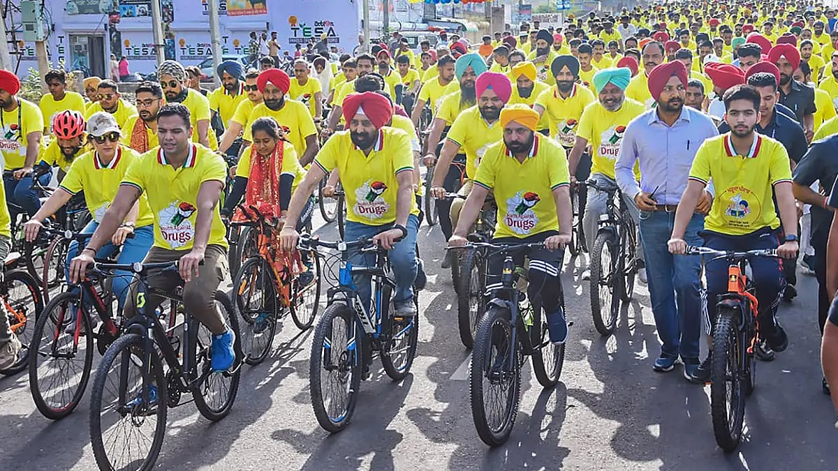Punjab Chief Minister Bhagwant Mann on Sunday led a bicycle rally on drug awareness here and said that his government was working on multiple plans to eradicate drugs from the society. More than 15,000 cyclists took part in the rally, according to the government.