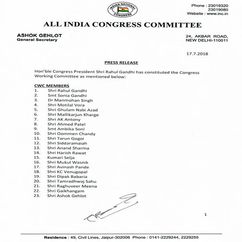 This the first CWC formed by the Congress chief after assuming charge of the party.