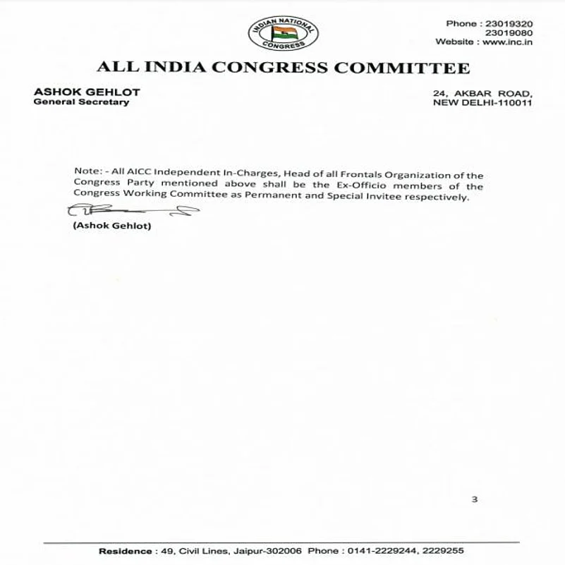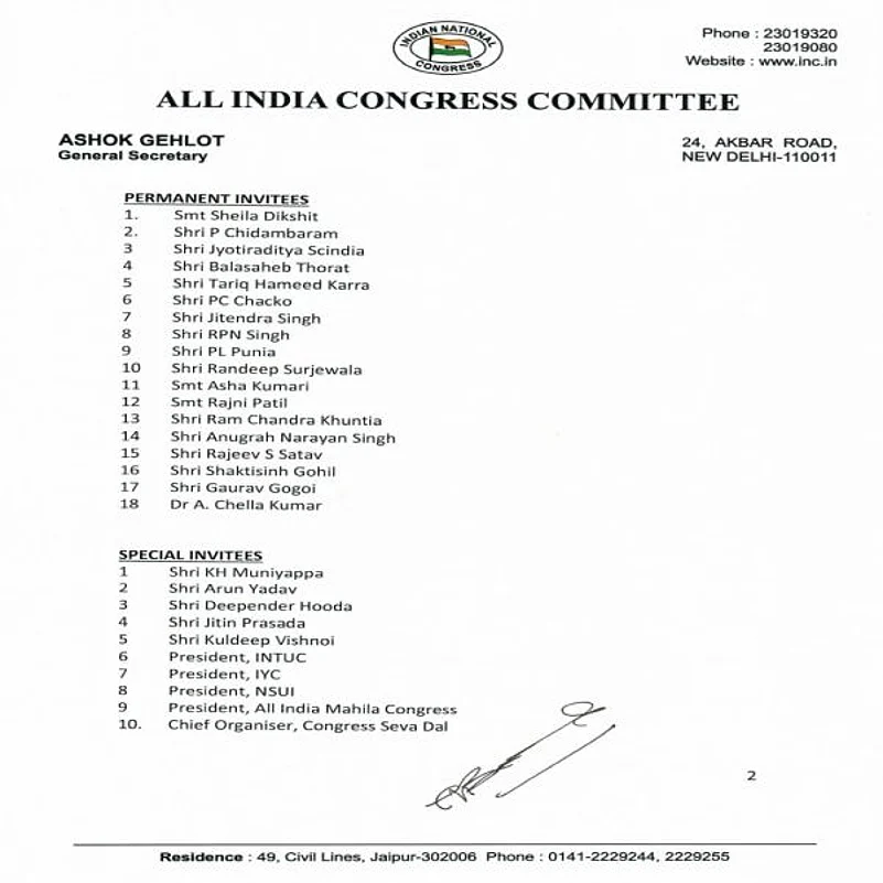 Independent in-charges appointed for various states will be among the permanent invitees to the working committee as ex-officio members, while the heads of five frontal organisations of the party - INTUC, Sewa Dal, Youth Congress, Mahila Congress and NSUI - will be part of the special invitees.