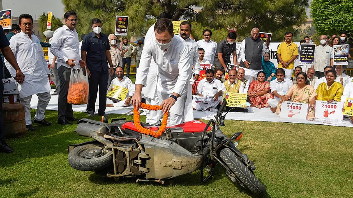 Rahul Gandhi Protests Against Fuel Price Hike Amid Skyrocketing Petrol Rates