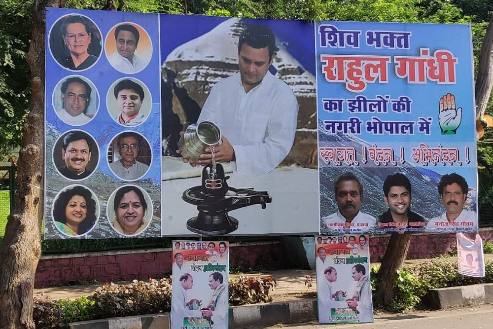 Ahead of the visit, the main opposition party has put up posters and banners in Bhopal describing the 48-year-old Congress chief, who just returned from a pilgrimage to Kailash Mansarovar, as a 'Shiv bhakt'.