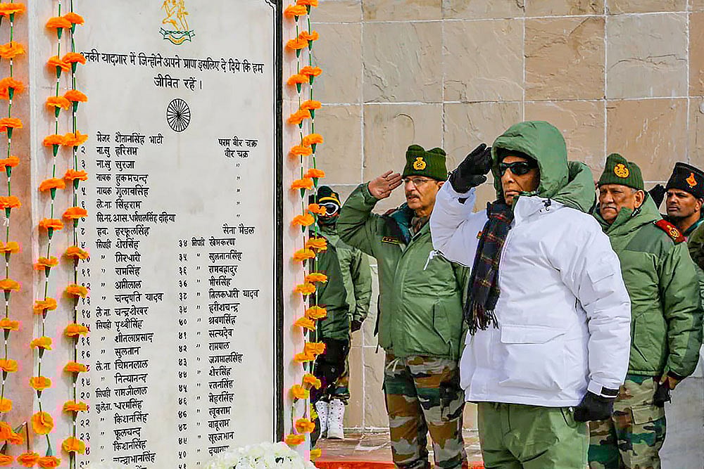 Union Defence Minister Rajnath Singh was in Ladakh on Thursday to inaugurate the renovated Rezang La memorial in Chushul, on the anniversary of the battle of Rezang La during the 1962 War with China. The memorial, Singh said, is an “epitome of passion, determination and fearless spirit of the country’s brave hearts”.