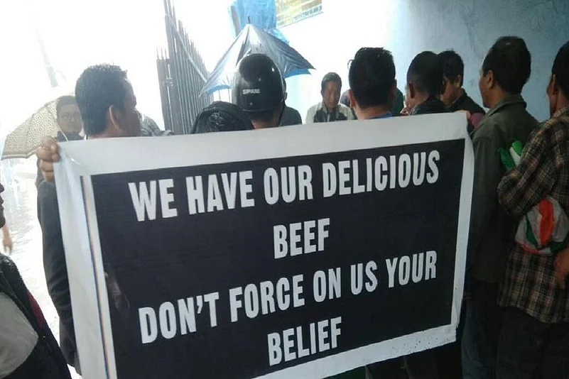 During the visit of Union home minister Rajnath Singh to Mizoram, a beef-fest was organized by a group to protest against the central government's decision to ban cattle trade in animal markets for slaughter.