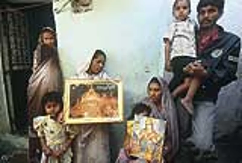 Amritbhai Rabari (fourth from left in the photograph), a resident of the Hindu-dominated Chanakyapuri locality, Ahmedabad, has emerged as another fearless samaritan during the riots. The middle-aged landlord hid two Muslim youngsters, Raju and Shabir (second and third from left in the photograph), in his chawl days before they were transported to a relief camp by the army. Says Rabari: "I called the army because I wanted to ensure that they would get out of here safely. This area is surrounded by Hindu families."