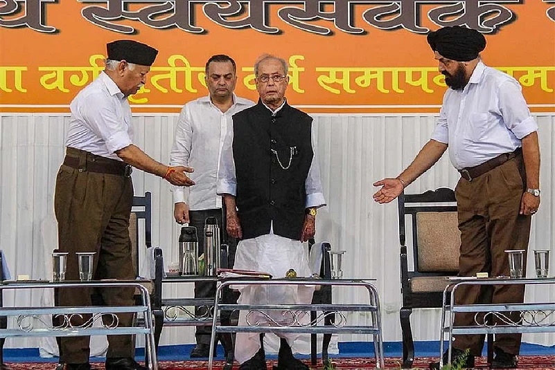 Mukherjee, on June 7, attended the Third Year Sangha Shiksha Varga (SSV) event as chief guest at RSS headquarters in Nagpur and addressed the workers there. (ANI)