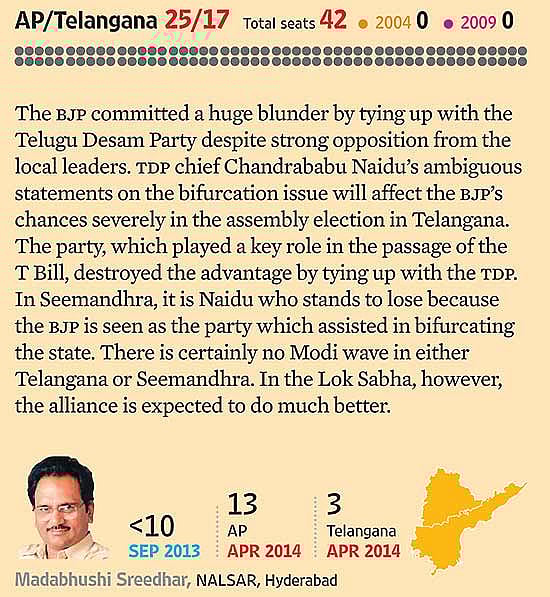 In September 2013, when Narendra Modi was anointed BJP’s PM candidate, we asked 29 experts—journalists, academics, analysts—in each of our 29 states to give us their best-case scenario for the NDA in 2014 in their states (see No, He Can’t). They came up with a figure of 187.