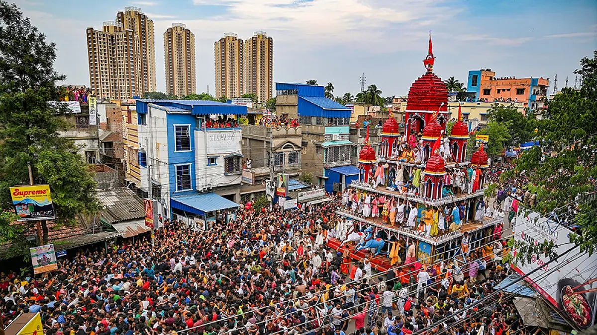 The festival was not held with public participation in the past two years due to the pandemic situation. Around 20,000 people turned up at Mahesh in Hooghly district to pull the famous chariot there. However, most of them did not wear masks ignoring the repeated requests of the organizers. Chariots were taken out in many other parts of Kolkata by various organizations. Children took out small chariots across the state.