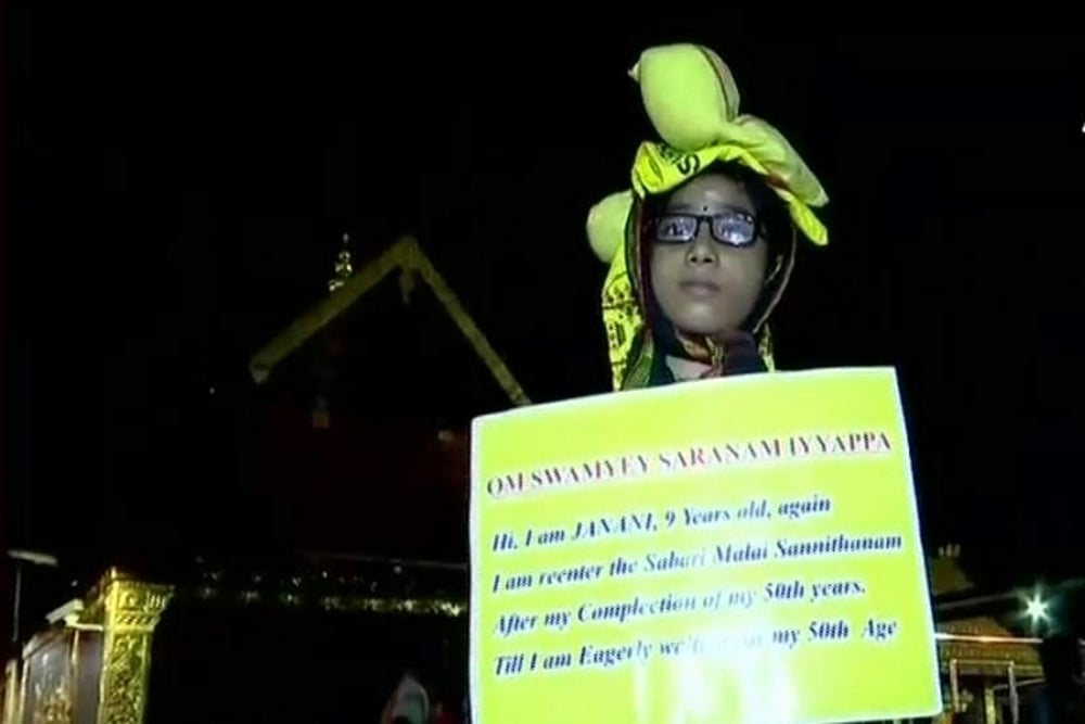 A nine-year-old girl from Madurai grabbed public attention at Sabarimala after she was seen with a placard, which read she will again visit the hill shrine to have darshan of Lord Ayyappa after she crosses 50.