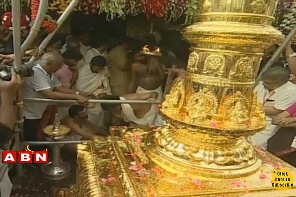 According to a report in The Hindu, the 12-metre-long, finely chiselled, teakwood mast was specially prepared by immersing it in medicated oil for one year. A team of master craftsmen from Parumala had made the cylindrical copper coverings (chembu-para) kept around the teakwood. All the cylindrical pieces and the small idols kept on the temple mast are covered with gold plates. A total of 130 kg of gold had been used, the report adds.