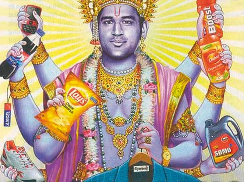 Indian cricket captain M.S. Dhoni has been hauled to court. A business magazine put him on the cover as Lord Vishnu holding the different products he endorses. Since one was a shoe, a devout Hindu has gone to court complaining about, what else, his religious sentiments being hurt. As expected, the court couldn’t resist the temptation of demanding Dhoni’s presence in person.