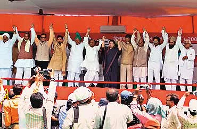 For Mayawati and Mulayam, it's a blood feud they would like to settle on the spot with the lady having declared that she would throw Mulayam, Amar Singh, Raja Bhaiyya and the whole gang into jail as soon as she is in power. Even the Congress may want her to squeeze Mulayam. But such outright politics of vendetta has a way of haunting you. When the boot is on the other foot, Mayawati's Taj corridor scam charges can always be revived and she too could in the future land in jail. Indeed, people joked in Allahabad that Mulayam produced an illustrious list of jail birds for a public rally—Jayalalitha, Om Prakash Chautala, Natwar Singh (involved in the Volcker scam) besides Chandrababu Naidu who is not in this club.