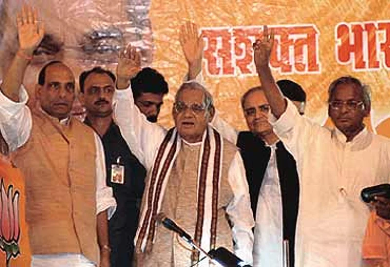But for the national parties like the BJP and Congress, Uttar Pradesh is part of a larger political game. The BJP had been putting up a united front till Atal Behari Vajpayee landed up for the only rally he addressed in his Lok Sabha seat Lucknow in the course of this campaign. As Rajnath Singh and Kalyan Singh stood behind him with poker faces, Vajpayee let the cat out of the bag: "People say that Kalyan and I don't get along. They say I did not come to campaign because I am angry with Kalyan. This is very unfair. Kalyan is an old associate. In the future too, he will remain a close colleague—I wanted to campaign but I was not allowed." Vajpayee's words hung in the warm Lucknow night. The same day Mulayam and Sonia too addressed rallies in Lucknow. At the end of a day of such frenetic political activity, no resident of Lucknow was any wiser on the verdict.