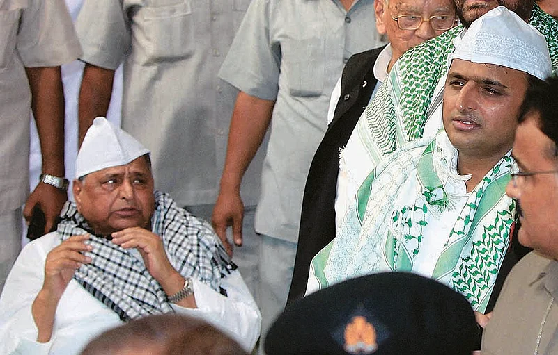 While law and order have never been the best under the Samajwadi regimes of the past, the situation has become so dire under Akhilesh’s rule that even his father couldn’t help expressing his dissatisfaction publicly in August last year. “Lots need to be done on the law and order front in the state; left to me, I would set it right in a matter of two weeks,” Mulayam had declared before TV cameras, much to his son’s embarrassment. In fact, Akhilesh’s loosening grip over his administration had begun to show early with the glaring presence of multiple power centres. So much so it spawned a joke in which UP is described as being a state with ‘five-and-a-half chief ministers’, Akhilesh being the sidekick ‘half’. The ‘big five’ are openly identified as Mulayam himself, his brother Shivpal, his cousin and party general secretary Ram Gopal Yadav, minister Azam Khan and the 1990 batch IAS officer who is also secretary to the CM, Anita Singh.