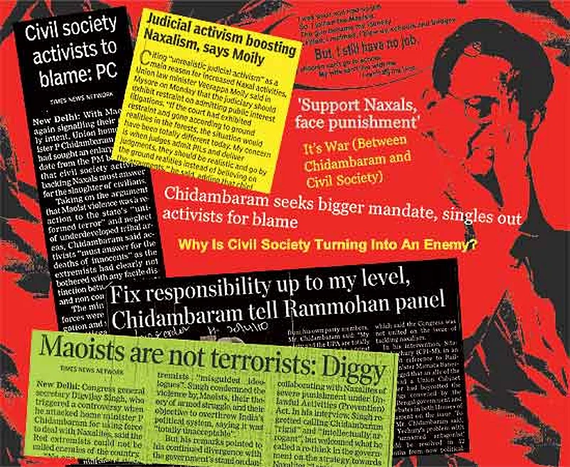 It was clearly not enough for the home minister. Endorsing the home secretary’s demand that “Maoist sympathisers” condemn the May 17 attacks, he said that “if the civil society organisations which rush to condemn the government question the legitimacy of government action and won’t say a word on what happened (in Dantewada)—that’s a very sad commentary on the state of our civil society organisations.” The home minister in fact went so far as to say that the chief ministers of state governments like Chhattisgarh had come to him and complained that they were spending more time fighting legal battles with human rights groups accusing the state of sundry violations and transgressions than tackling the Maoists.