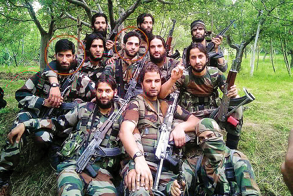 Burhan Wani (circled) with comrades in a photo on a Facebook page