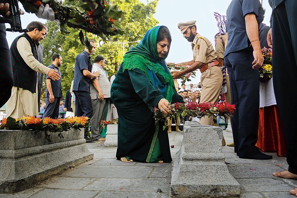 Mehbooba at the graves of those killed in the 1931 uprising