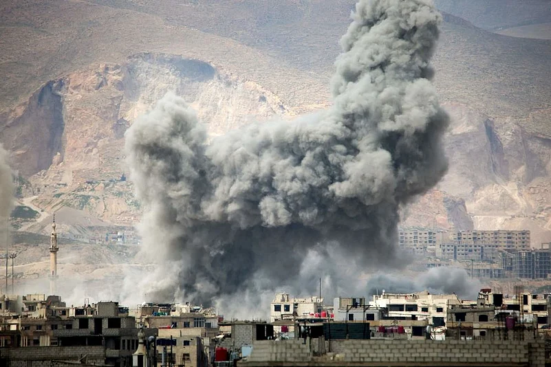 In the enclave's main town of Douma, air strikes have reduced homes to piles of rubble on both sides of the road, an AFP correspondent reported.