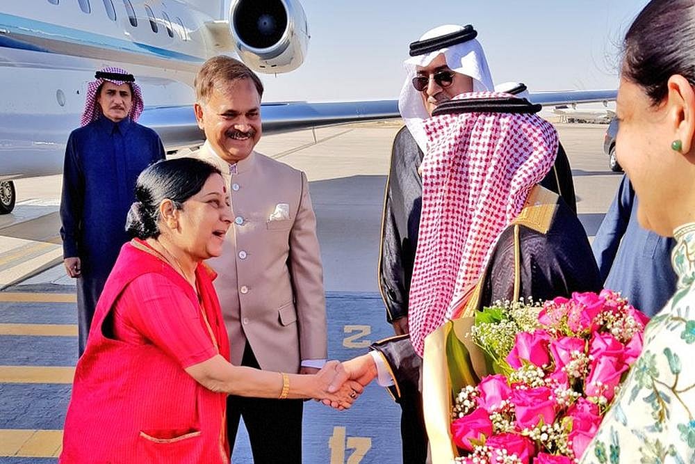 "Warm welcome reflecting our relationship! EAM @SushmaSwaraj received by Saudi officials and Indian Ambassador Ahmad Javed on her arrival at Riyadh airport. Saudi Arabia is India's valued strategic partner," Ministry of External Affairs spokesperson Raveesh Kumar tweeted.