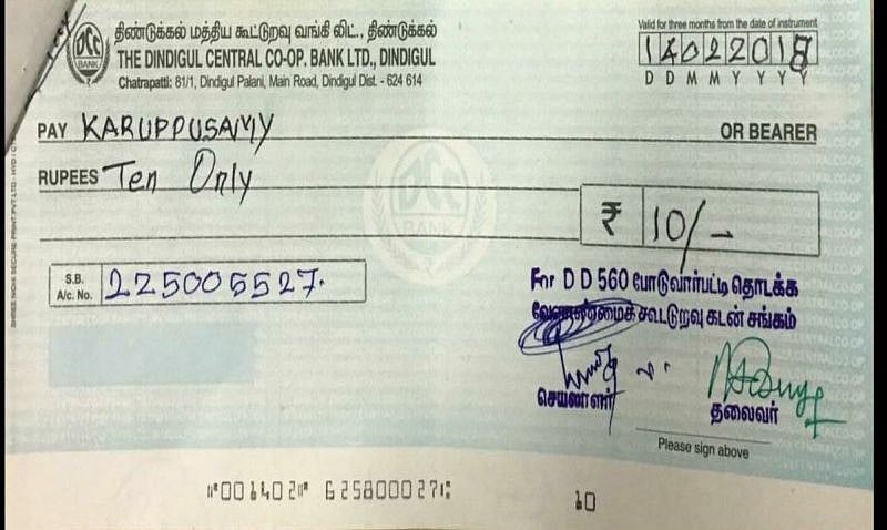 Farmers in Tamil Nadu’s Dindigul received compensation cheques of as low as Rs 5 and Rs 10 in many parts of the state. The cheques have been issued by the Dindigul Central Cooperative Bank Ltd in a bid to alleviate farm distress, reported The Times of India.