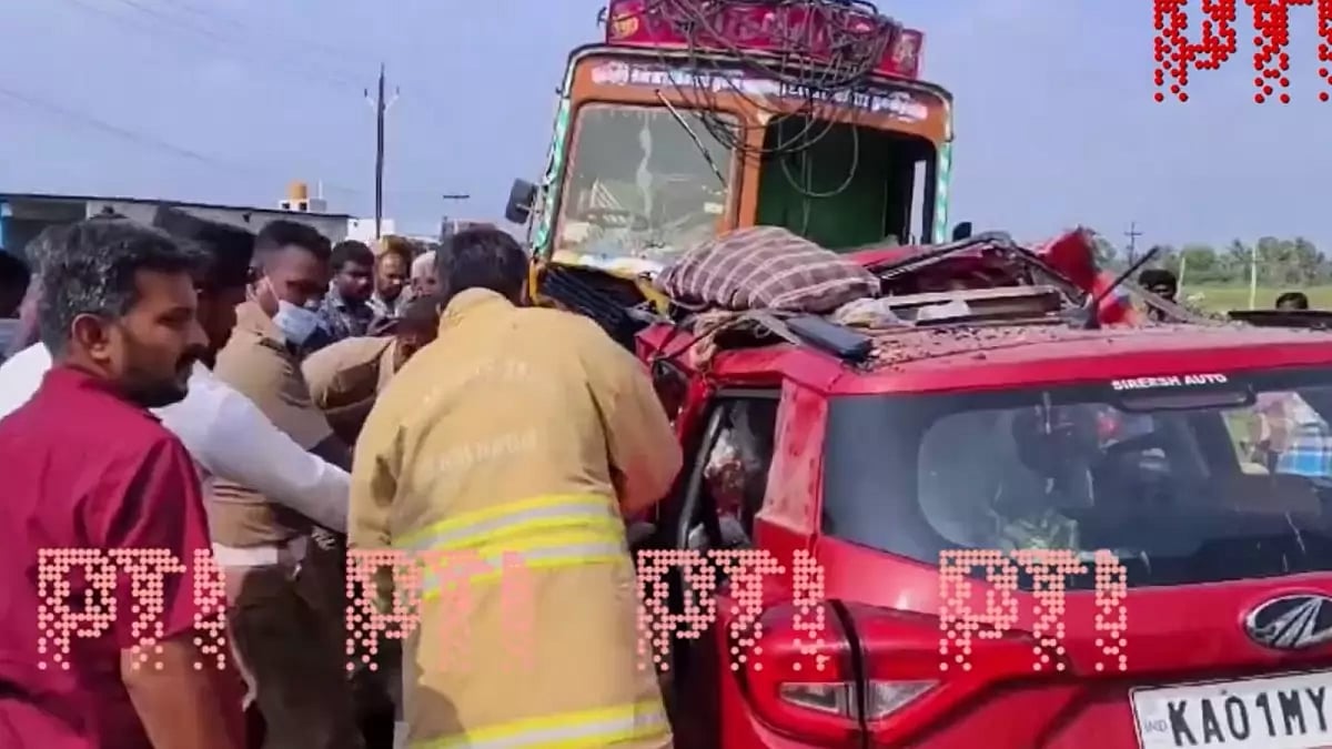 The accident occurred on the Tiruvannamalai-Bengaluru highway and the occupants of the car were returning to the Karnataka capital after visiting a temple in Tamil Nadu.