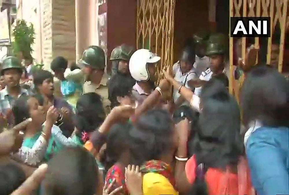 As the protest intensified a scuffle broke out between the agitators and police deployed outside the school. Police also resorted to baton-charge to disperse the agitated crowd.