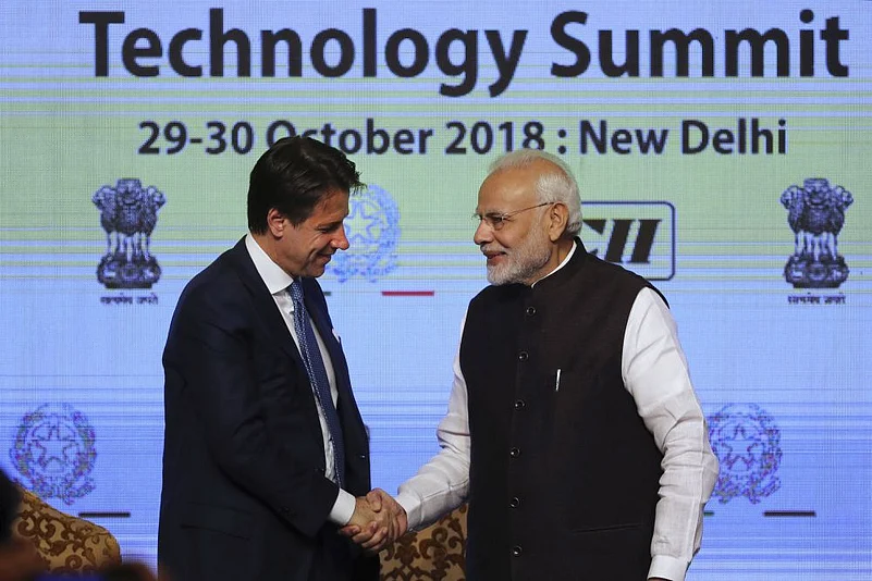Conte held a one to one meeting with Prime Minister Narendra Modi after a call on by External Affairs Minister Sushma Swaraj, and addressed the valedictory Session of the 24th version of the Technology Summit, jointly organized by the Confederation of Indian Industries, the Department of Science and technology of India and the Italian Embassy in New Delhi since Italy was the partner country this year.