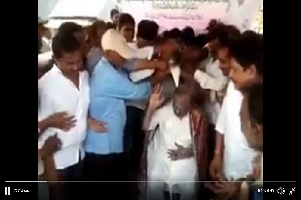 They made Chary sit in a chair and took turns to pour milk on his head, that is, gave him a milk ‘abhishekam’. Chary was also seen subtly protesting in the video. While taking pouring milk on Chary’s head the fans also shouted ‘jai Telangana’ slogans.