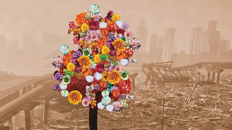 The man in the red jersey is yet to find out the correct answer. Time is passing fast. With the dimming sunlight, comes out the beautiful Moon where the flag of the ancient country is higher than before. A few hundred meters away from the Magic Bullet Paradise, you can find the replica of a Moon-traveller. You look up. Embrace the glory. There is no heap of waste that restricts your view. No gory smell of animal skin. Vegetation is everywhere. Flowers. Incense sticks. Fruits. Colours.