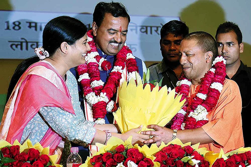 “The problem is the BJP has been unable to nurture any leaders from among the backwards,” says a central BJP leader. “With the exit of Kalyan Singh (now governor of Rajasthan) and Uma Bharati’s role becoming almost negligible, the party has failed to cultivate another Lodh leader. Among the few OBC leaders it has nurtured is Keshav Prasad Maurya, who should have rightfully been made the CM. But the party went with Yogi, who reinforced the party’s image as a savarna party of Brahmins, Bhumihars and Thakurs.”