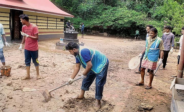 As people returned to their homes during the aftermath, youth volunteers organised themselves to clean up houses. The Samastha Kerala Sunni Students Federation, a Muslim organisation, was allowed to clean a few flood-affected temples and their premises, filled with slush and dirt, in Palakkad, Wayanad and Ernakulam districts. Volunteers not associated with any organisation also sprang up to clean religious places and houses.