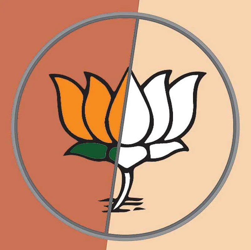 Alongside Modi, though, something else went through a subtle image makeover, in keeping with the overall BJP-lite rebranding exercise. It was the BJP election symbol—the lotus. Saffron in colour ever since the BJP came into existence in 1980, mid-way through the campaign, it went white, its petals marked out by a thick black border. They began appearing as brooches, first on Modi, then on other party spokespersons, but caught the public eye when Narendra Modi very publicly took a selfie with a black-and-white lotus cutout after casting his vote.