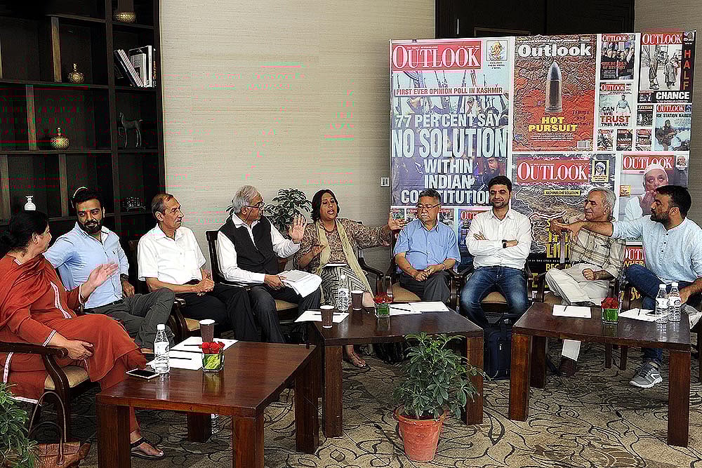 On June 28, eight people came together for an Outlook Roundtable on Kashmir in Delhi. RSS ideologue Seshadri Chari, former Northern Army Commander Lt Gen (retd) D.S. Hooda, three-time National Conference MLA Aga Ruhullah Mehdi, PDP leader Nayeema Mehjoor, advocate Abdul Majeed Banday, journalist Gowhar Geelani, scholar Basharat Ali and strategic expert Prof P. Stobdan participated in the discussion, which was moderated by TV anchor Barkha Dutt. The participants examined some of the fundamentals from their unique perspectives and sought to offer solutions. Excerpts: