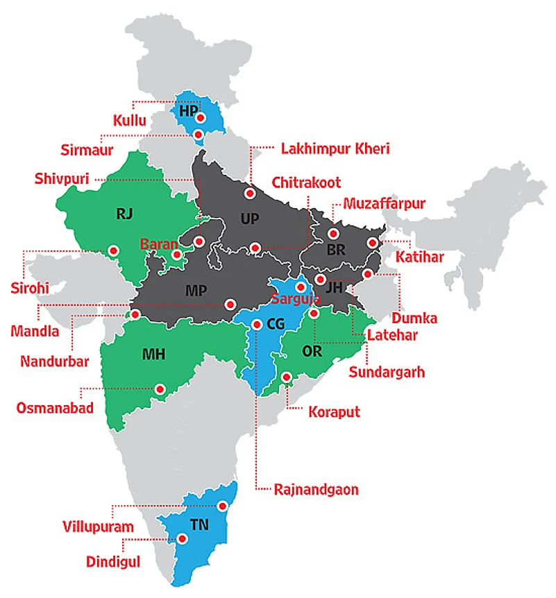 The PEEP Survey took place in May-June 2013 in a total of 20 districts—two of the poorest in each of the 10 states surveyed. In each of these districts in turn, a block was selected where a local organisation was available to facilitate the survey. Again four villages in each block were selected at random from among those which had a population between 500 and 1,500. In the last break-up, 30 households in each of the 80 villages surveyed were selected at random from the official list of NREGA job cards. The survey teams were able to locate and interview 1,926 of these 2,400 households. In addition, 12 pensioners in each village were interviewed. They were selected at random from the official lists of old-age and widow pensions. The entire list of pensioners (3,789 names) was verified case by case. The survey was initiated by researchers at the Indian Institute of Technology, Delhi, with support from the Indian Council of Social Science Research, and conducted by student volunteers from Delhi and elsewhere.