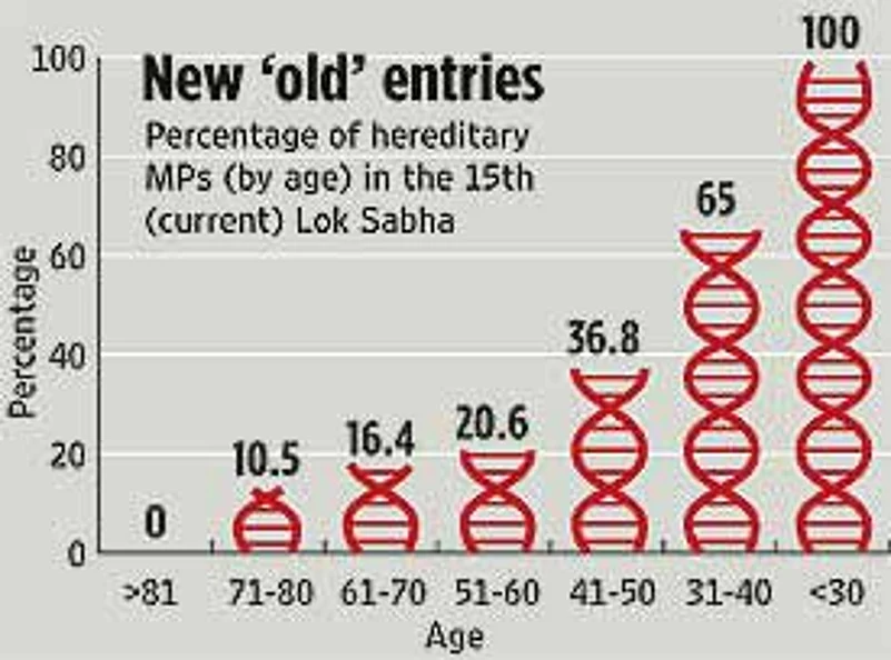 Going by present trends, more than 100 extra hereditary women MPs might be elected. This was a conservative estimate: if prominent MPs like Sonia Gandhi were to run in unreserved seats, and male MPs who were obliged to step down were to hand over their seats to their wives or daughters, the number of hereditary women MPs in the next Lok Sabha could cross 150.
